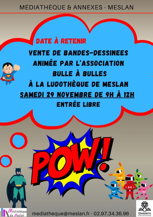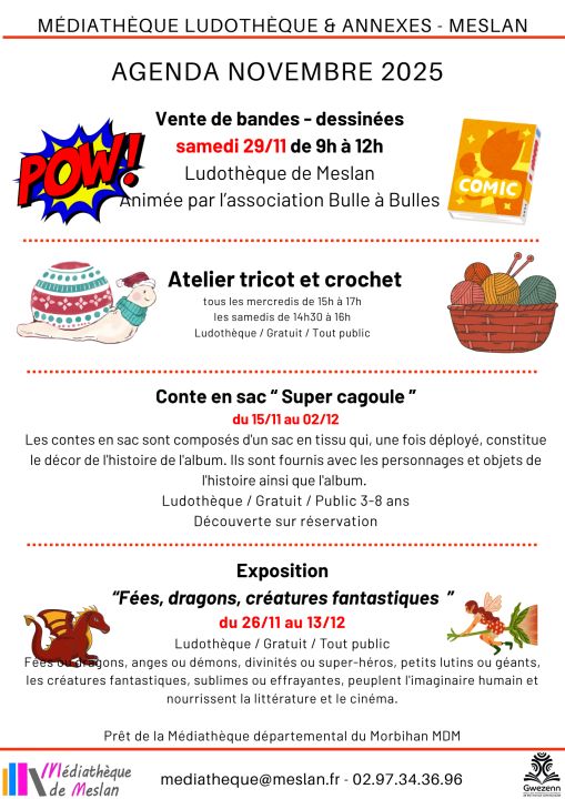 Ci-joint les prochains événements qui auront lieu à la médiathèque - ludothèque de Meslan
