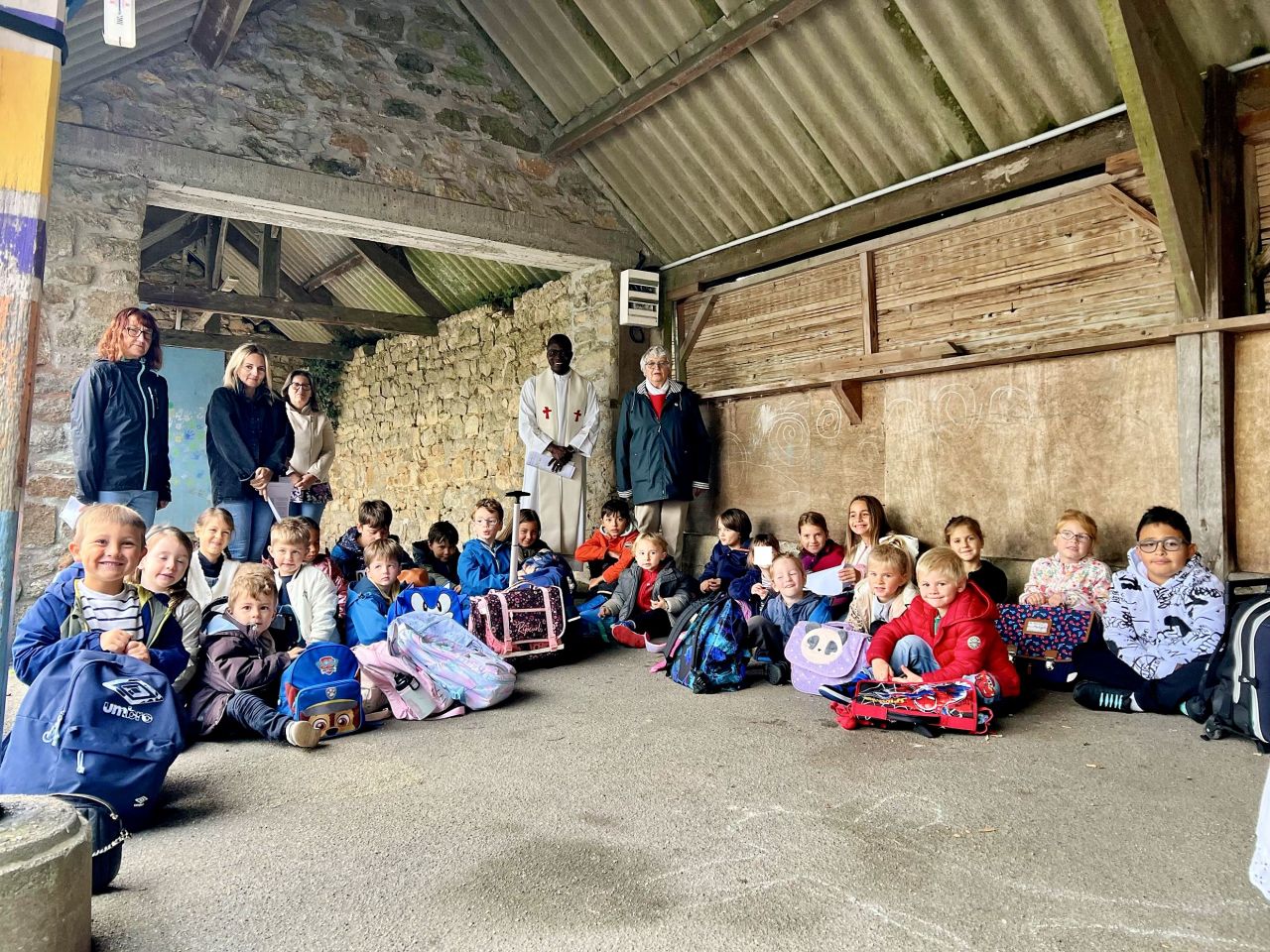 Le jeudi 11 septembre, toute l'école Notre Dame de Meslan a participé à la célébration de rentrée : la bénédiction des cartables.