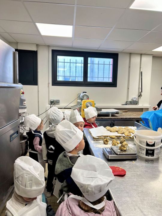 Ensuite, place à la pratique ! Les petits pâtissiers en herbe ont préparé des cookies : ils ont mélangé la pâte puis formé de jolies boules avant la cuisson.